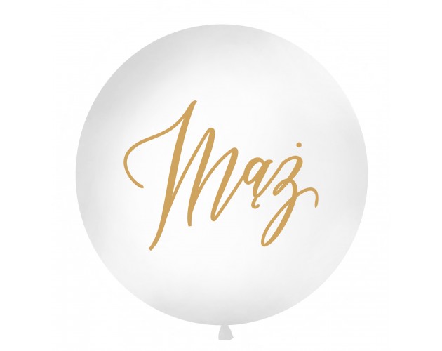 Biały balon gigant lateksowy napełniony helem z napisem "mąż"