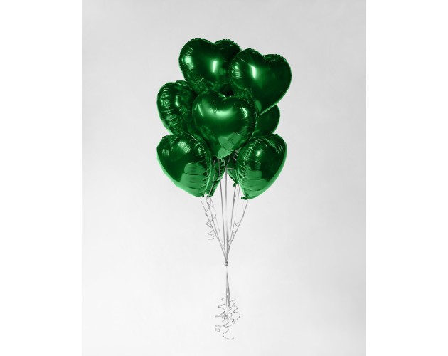 Zestaw zielonych serc z helem
