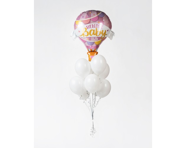 Zestaw welcome baby różowy z helem