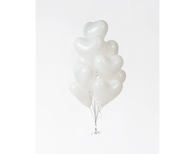 - 10 białych balonów w kształcie serca napełnionych helem