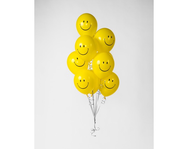 - 10 żółtych balonów z nadrukiem uśmiechu napełnionych helem