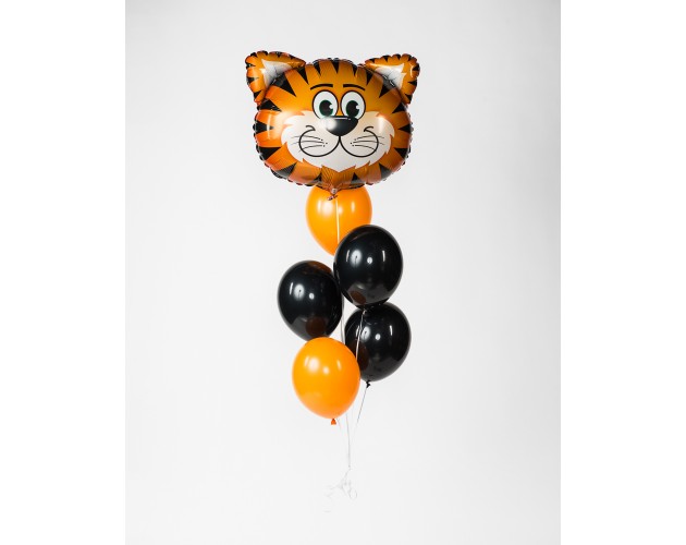Zestaw Tygrysek- coś dla młodszych wielbicieli kotków :) uroczy, czarno- pomarańczowy zestaw składający się z foliowego balonu w kształcie tygrysa oraz 5 balonów gumowych napełnionych helem. Całość tworzy bardzo przyjemną i spójną kolorystycznie kompozycję, która ucieszy niejednego malucha!