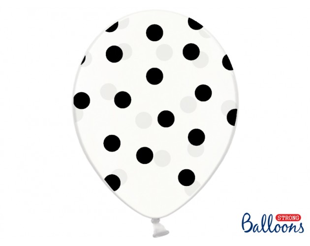 Balon transparentny z czarnymi kropkami lateksowy z helem