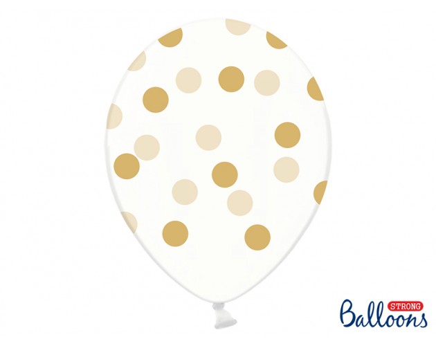Balon transparentny ze złotymi kropkami lateksowy z helem