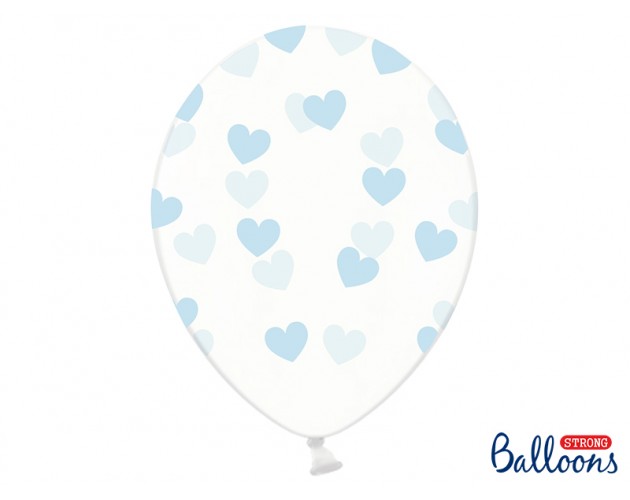 Balon transparentny z błękitnymi sercami lateksowy z helem