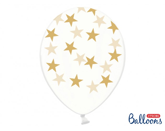 Balon transparentny ze złotymi gwiazdami lateksowy z helem