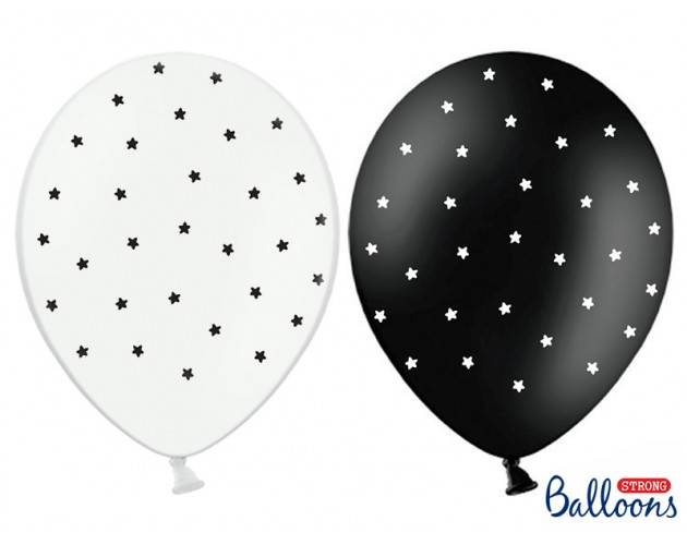 Balon z gwiazdami lateksowy (czarne w białe gwiazdki, albo białe w czarne gwiazdki)