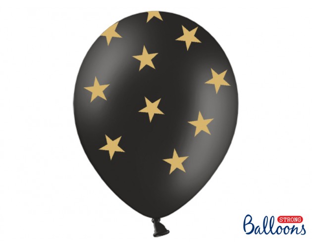 Balon czarny w złote gwiazdki z helem